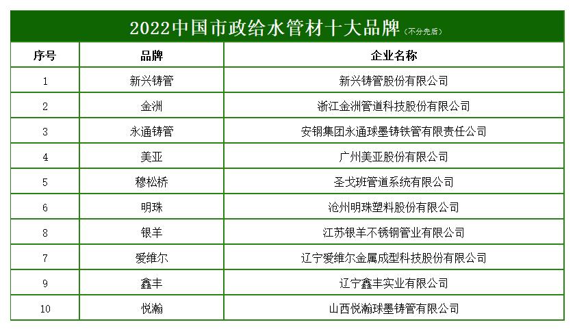 - 2022中國(guó)市政給水管材十大品牌
