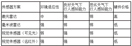 上表中可以看出,目前主流的針對前向的傳感器融合方案都有一個顯著的缺點:在惡劣天氣情況下,只有毫米波雷達一個單傳感器可以起到作用,而毫米波雷達自身又難以識別行人。故現(xiàn)有的技術(shù)方案只能在正常天氣下工作,在惡劣天氣環(huán)境下(特別是光線不好的情況)會對路上行人的生命會造成極大的威脅。