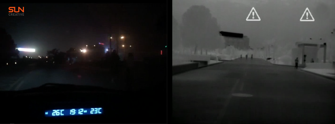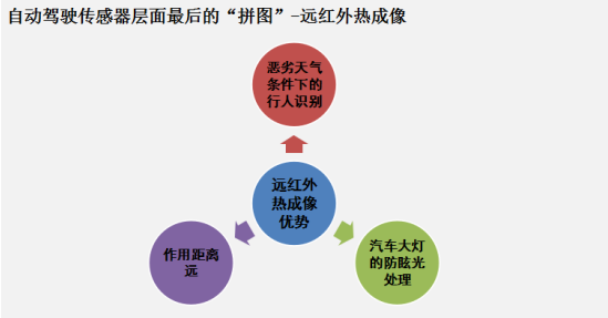 所以面對這種既要能在夜晚和惡劣的天氣情況下,解決視覺和行人識別的問題。看似無人駕駛未能找到解決方案,但其實我們忽略了,夜視傳感器中的遠紅外傳感器。因為遠紅外技術(shù)只考慮觀測主體與環(huán)境之間溫度差,可以不受光線情況影響。